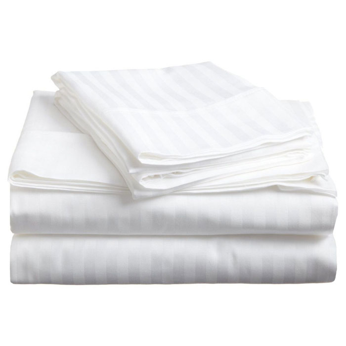 Enhance your bedding with our flat sheet, available in a pristine white color. Crafted from 100% Egyptian cotton with a 1 CM stripe pattern, this sheet offers a silky-smooth feel and elegant look. Choose from a range of thread counts, from 200TC to 800TC, for your desired level of softness and durability. Machine washable for easy care, this flat sheet is designed to provide ultimate comfort and style.