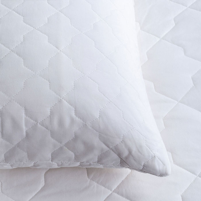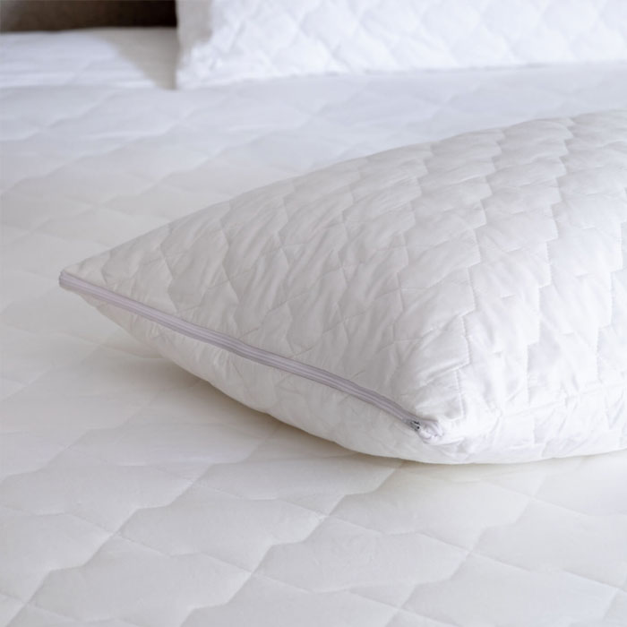 Our pillow protector, available in white, is made from PVC polyester fabric, which has excellent waterproofing and durability properties. The reinforced stitched quilted pattern ensures long-lasting use, while the breathable material provides comfort. It is anti-dust and allergy proof, providing a healthy and comfortable sleep environment.